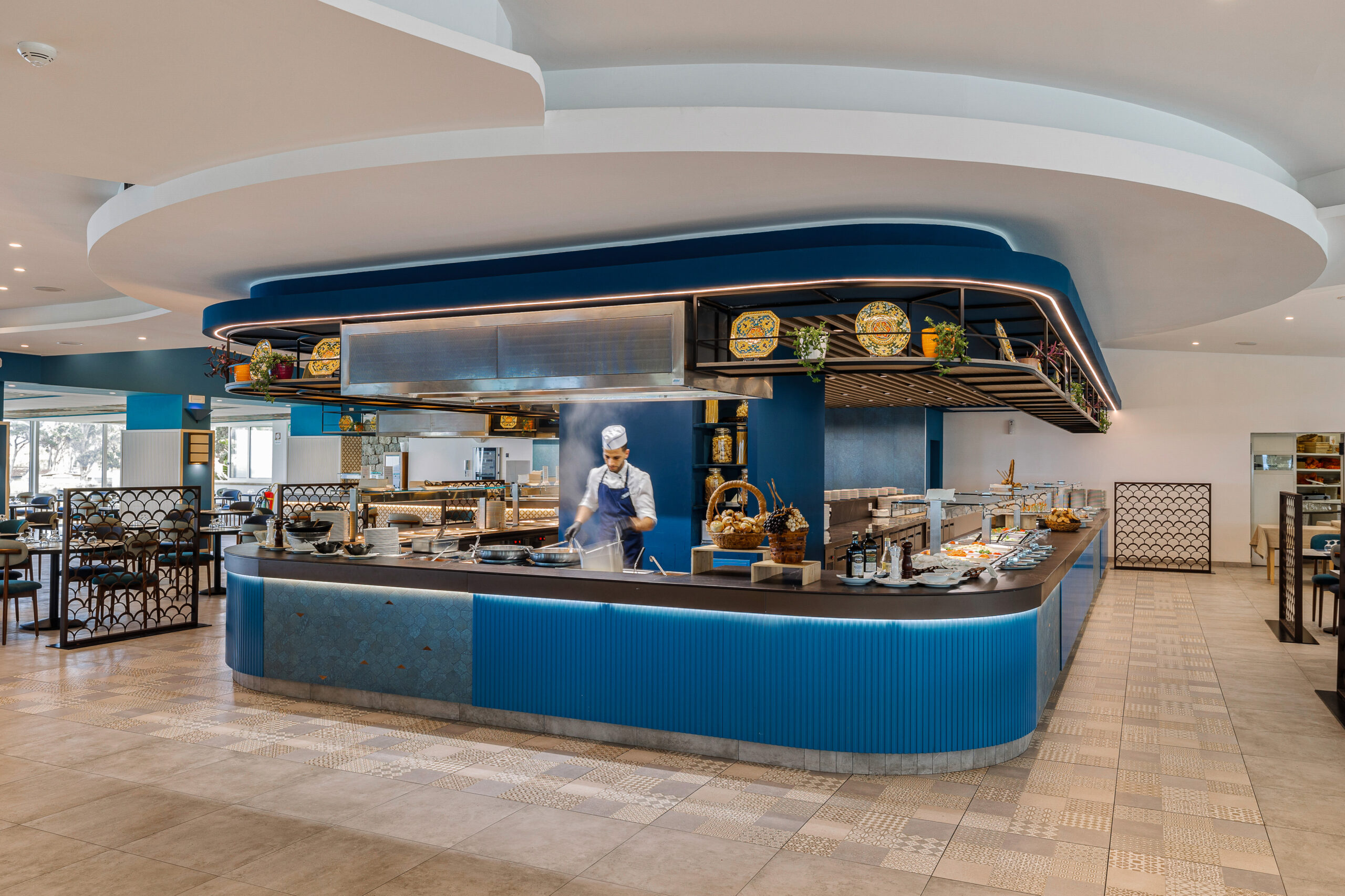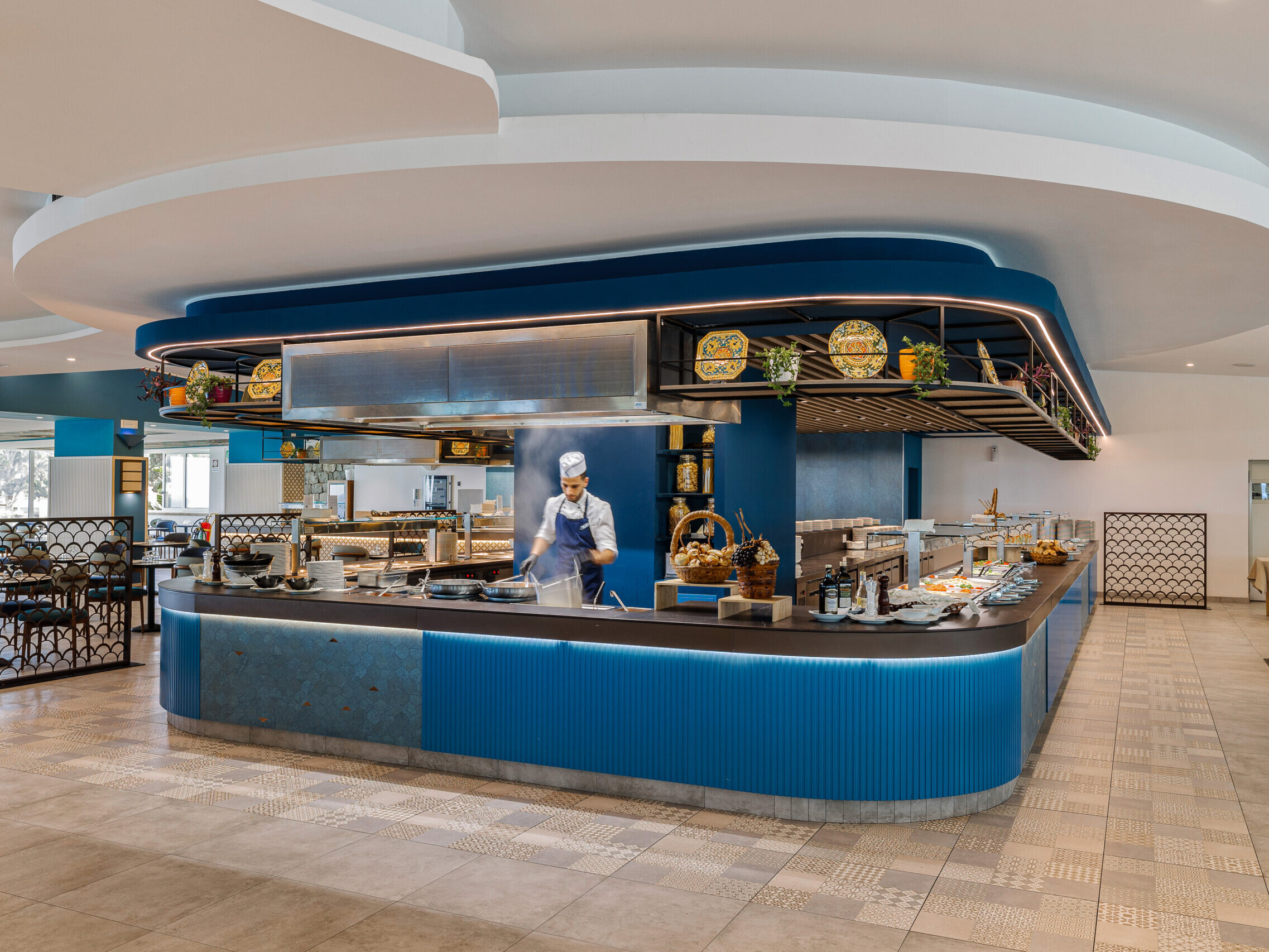 Nei ristoranti a buffet, i nostri chef cucinano davanti agli ospiti nelle apposite stazioni di cottura dal vivo.